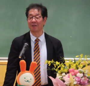 まずは、2025年度末にてご退任なさる中丸宣明先生より、卒業生へ向けて、あたたかい贈る言葉が述べられました。