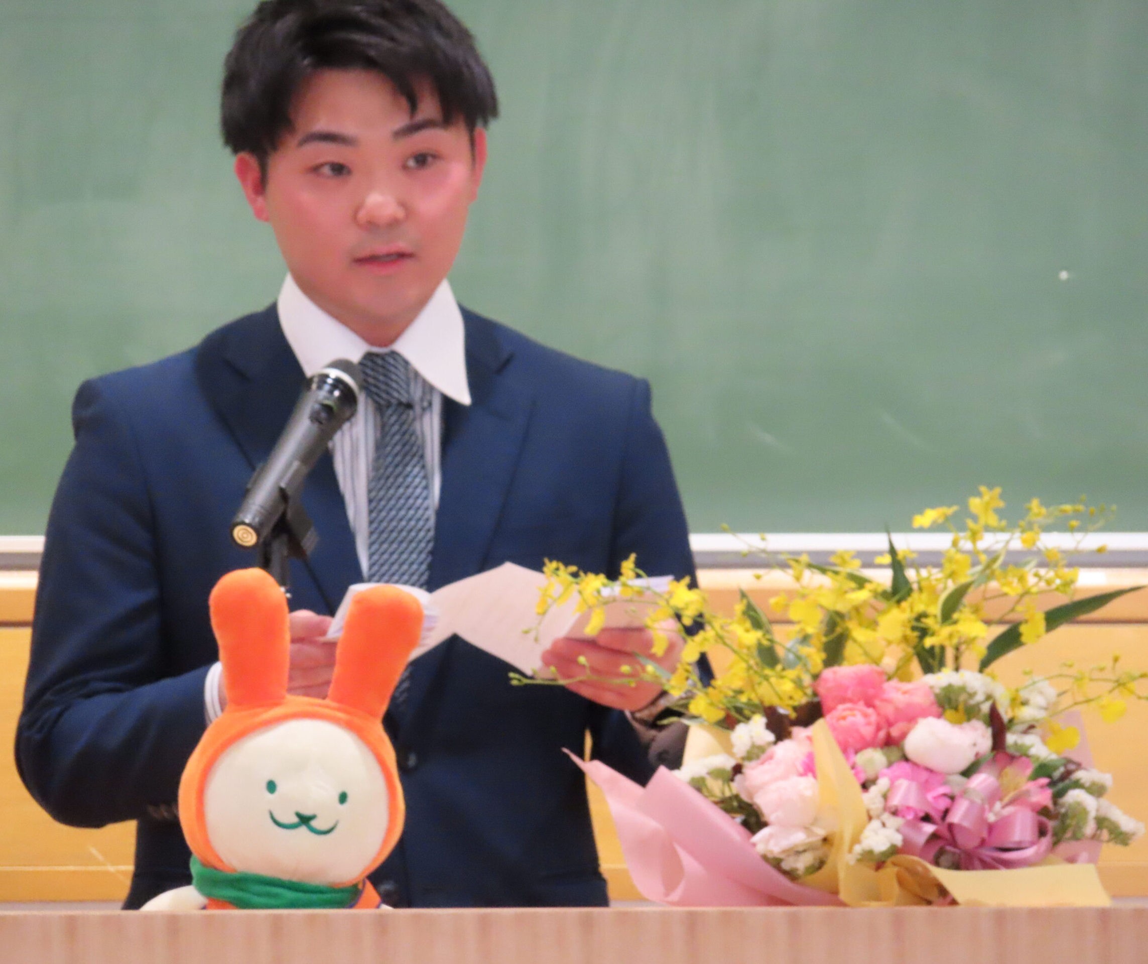 口和人先生より、卒業生へ向けて、力強いエールが贈られました。恒例の学生委員会